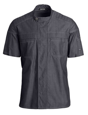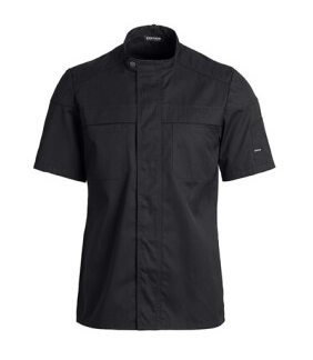 Kortärmad kockjacka i modern fit med ståkrage och råa detaljer.