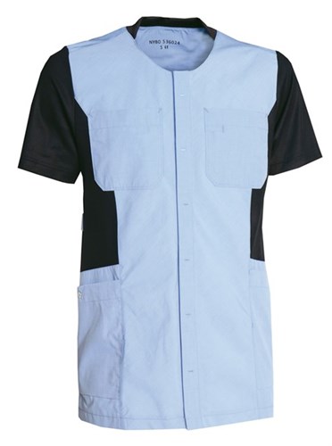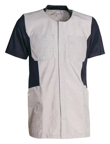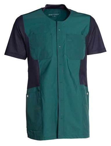 Rymlig skjorta med dolda tryckknappar, mjuk ribb i halsringningen och justerbara tampar i ryggen, vilket ger möjlighet till individuell passform. Två bröstfickor, med hälla för ID-kort, samt rymliga och stängbara höftfickor, med nyckelband och extra stora mobilfickor. Skjortan har en bra längd som täcker höfter och bak, i alla arbetssituationer. Slitsar i sidorna ger ökad komfort och rörelsefrihet. – Ärmar och sidopaneler i lätt, mjuk och svett transporterande piké med bomullsrik insida.
