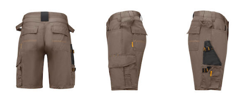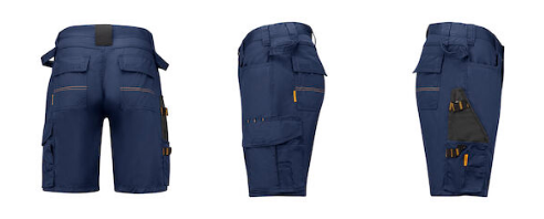 Serrviceshorts av lättskött polyester/bomull-blandning som håller färg och form. Med rymliga framfickor och bakfickor med lock. Benficka med extra fack med kardborrestängning, tumstocksficka med knivhållare.