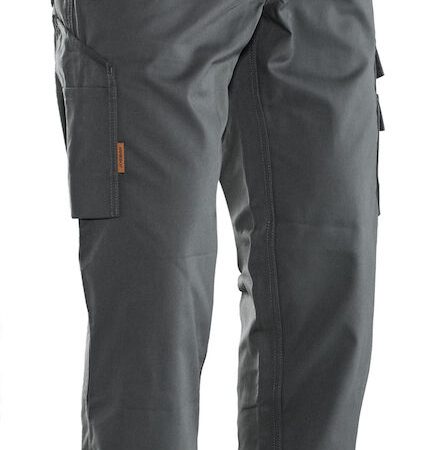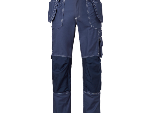 Rymliga framfickor och bakfickor med lock samt tumsstocksficka. Benficka med extra fack och ficklock med kardborrestängning. Finns i 3 färgalternativ, även i dammodell. Stl: C42 – C58
