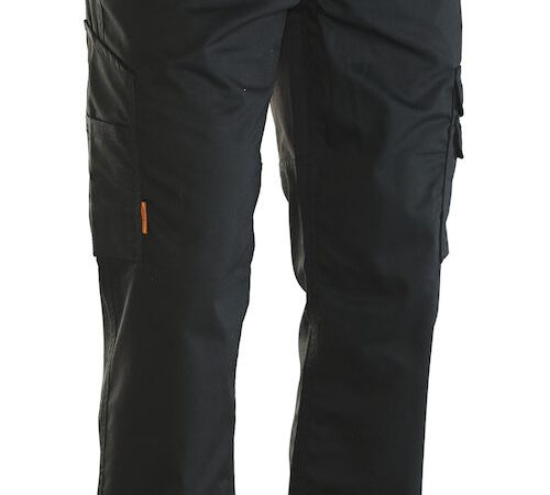 Servicebyxa i lättskött polyester/bomull som håller färg och form, med stretchpaneler på bakstycket, för ökad rörlighet.