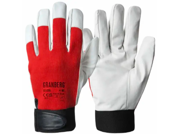 Mjuka och slitstarka monteringshandskar av Getskinn med ovanhand i bomull.