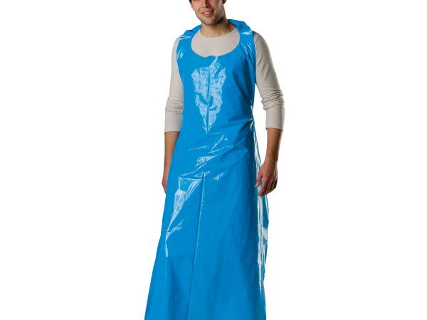 Engångsförkläde av 100% ren plast som passar för direktkontakt med alla typer av livsmedel. Finns i Blå eller vit färg.150cm