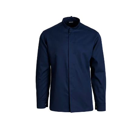 Kock-& Serviceskjorta i modern fit passform. Av hållbart material: Polyester/Bomull (65/35%). Med kinakrage och flätad front med lätt tillgång till dolda tryckknappar. Dold pennficka inuti dold pennficka i frontpanelen, slits i sidan och inskärning i ryggen.