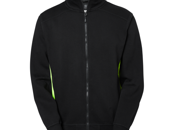 Collegejacka med borstad insida och avvikande paneler i sidan. Två rymliga frontfickor med dragkedja. Elastisk mudd i nederkant och vid ärmslut Två färgalternativ har förhöjd synbarhet. Stl: XS – 4XL
