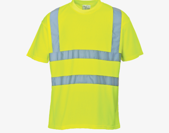Varsel-T-shirt utav 100% polyester med bra andningsförmåga och visibilitet