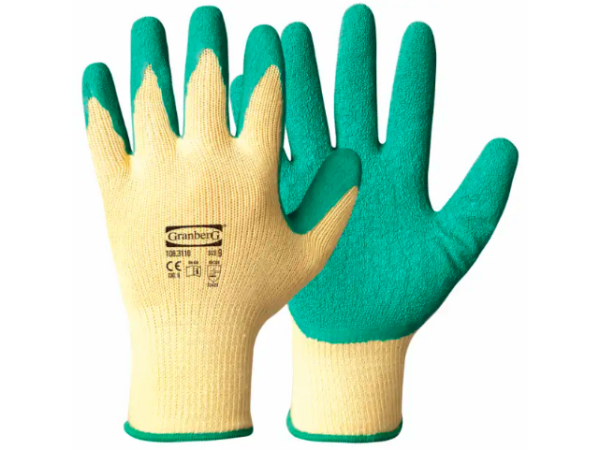 Allsidiga arbetshandskar av bomull & polyester med handflata och över fingertopparna belagda med latex för bra grepp och slitstyrka.