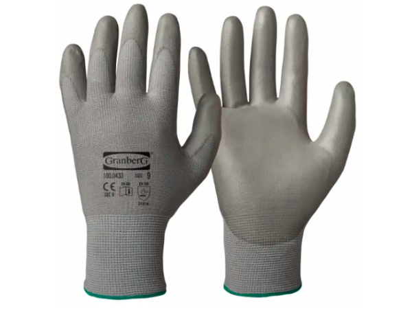 Tunna och smidiga montagehandskar av Polyester med ventilerande egenskaper och PU-beläggning i innehanden för ett bra grepp och hög slitstyrka. Lämpliga för lättare arbete inom montering, transport, underhåll, industri, lager och butik. Stl: 7– 11. Förp. 12 / 144 st