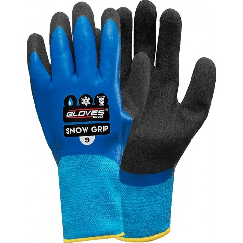 Vattentät fodrad montagehandske med mycket bra grepp. Dubbeldoppad i latex med ett extra lager nitrilblandning i innehanden och över fingrarna.