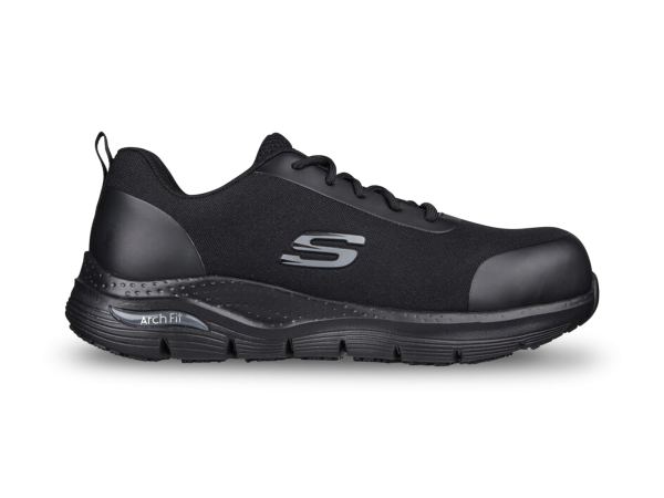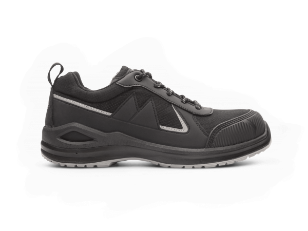Skyddssko slitstark med behandlad syntet ovandel och extra TPU förstärkning vid tå, häl och öglor. Arch-Fit innersula med goda funktioner.