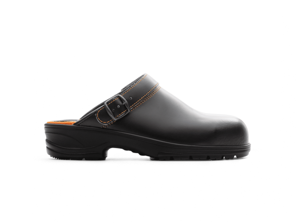 Klassisk skyddstoffel av tåligt PU-belagt läder. Ergonomisk utformad innersula av Texon. Med elastisk och justerbar hälremm. Storlekar: 35 – 47