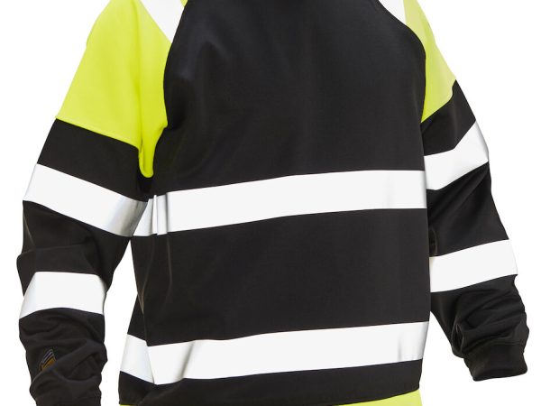 Sweatshirt av med borstad insida och ribb i halsringningen, nederkant och ärmavslut. Påvärmda reflexer utan sömmar samt reflexer över axlarna som syns uppifrån. Certifierad i varselklass 1.