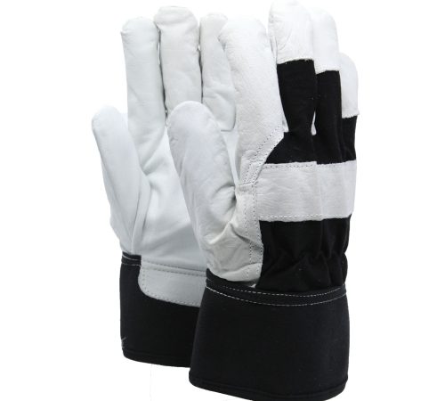 Slitstark halvfodrad arbetshandske i nötnarv m. ovanhand i bomull och krage i nötskinn.